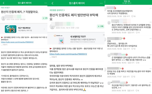 맘카페에서는 “정치적 선동이 아니라 부모의 당연한 불안”이라는 댓글이 다수 달렸으며, “원산지 인증제는 단순 행정 절차가 아니라 아이들 건강의 최후 보루”라는 의견도 나왔습니다. 이처럼 이번 논란은 단순한 제도 개정이 아닌 ‘국민 신뢰’의 문제로 번지고 있습니다.