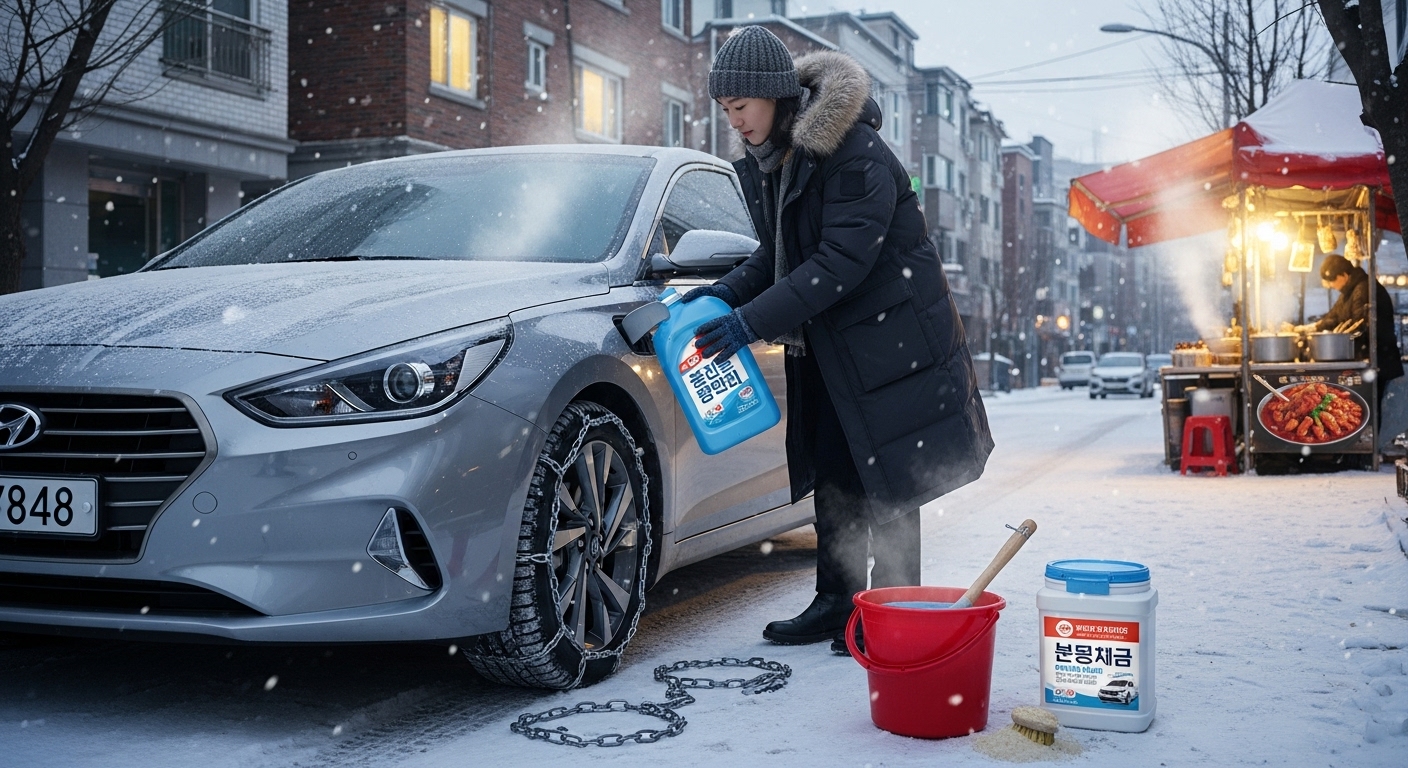 또한 워셔액은 일반 제품이 아닌 ‘동절기용’을 사용해야 합니다. 일반 워셔액은 영하에서 얼어 노즐이 막힐 수 있으므로 **-20℃ 이하에서도 동결되지 않는 제품**으로 교체하세요. 💧