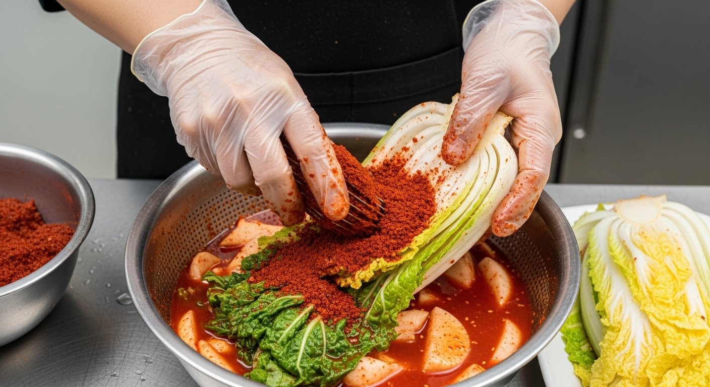 양념은 김치의 ‘영혼’입니다. 고춧가루의 매운맛, 젓갈의 감칠맛, 마늘과 생강의 향이 조화되어야 합니다.