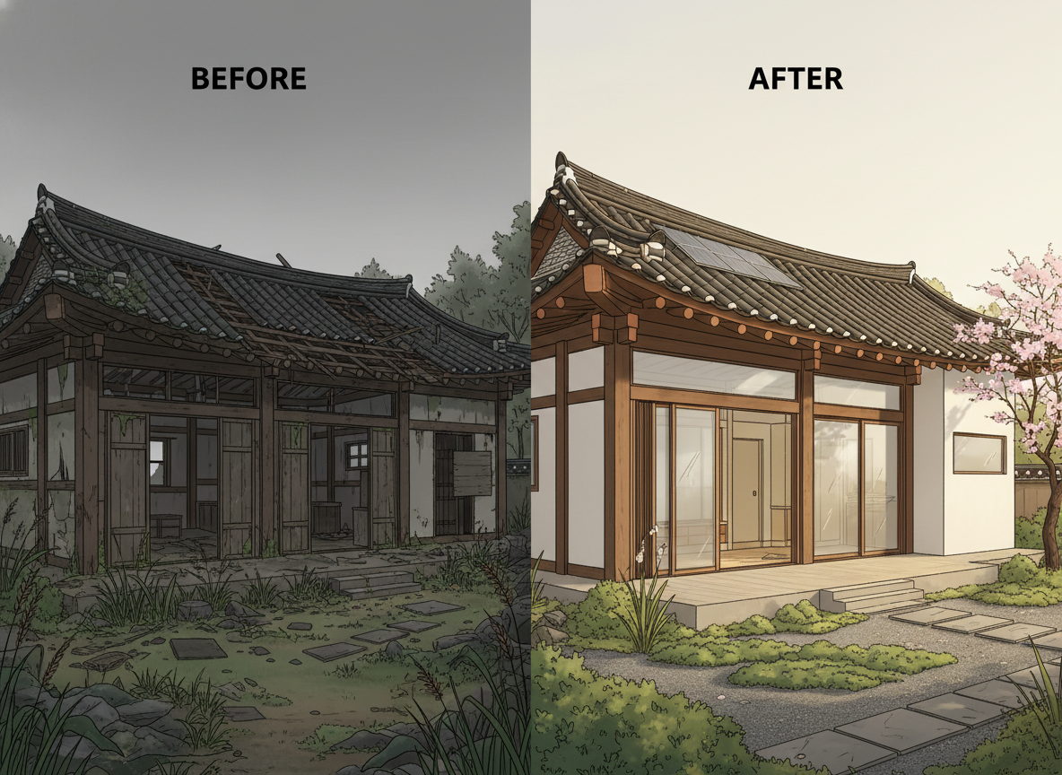 새로 주택을 짓는 경우 최소 1억 원 이상 소요되지만, 빈집 리모델링은 3,000만~5,000만 원이면 충분합니다. 정부 지원 귀농귀촌 정착지원금 최대 3,000만 원과 농촌 주택 개보수 지원금 2,000만 원을 활용하면 초기 비용을 크게 줄일 수 있습니다.