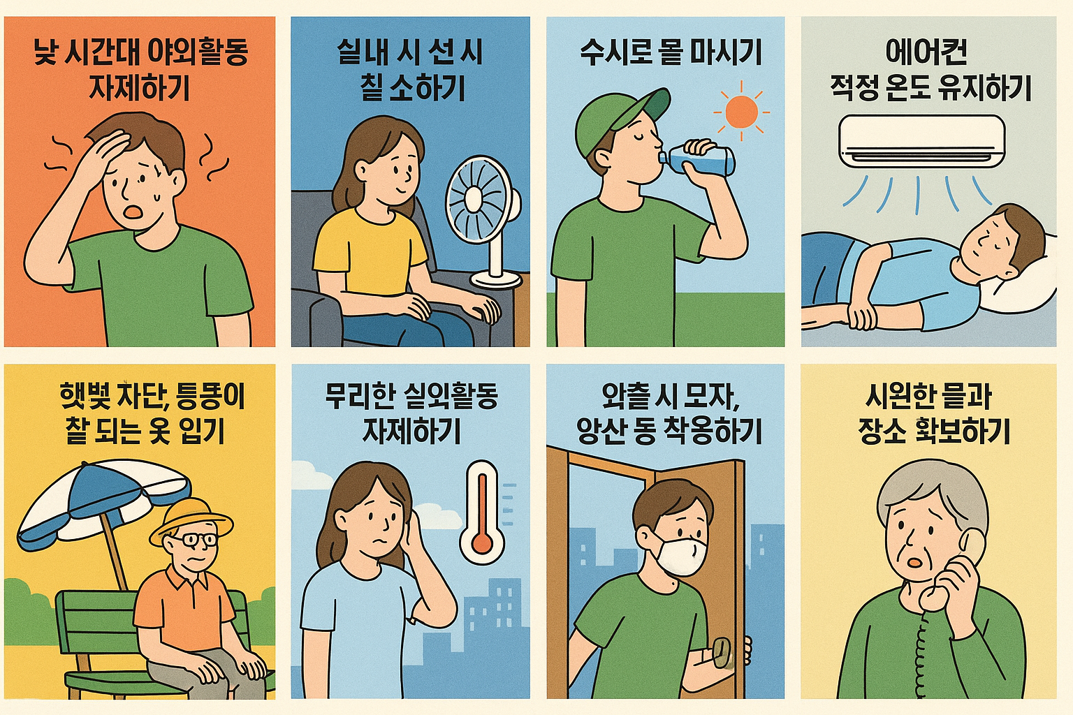 찜통더위 생존수칙 (폭염, 냉방, 외출)
